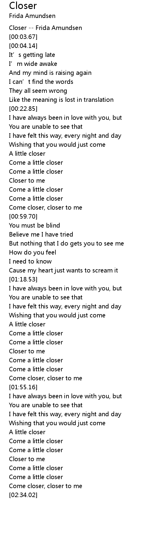 The Chainsmokers - Closer (Lyrics) ft. Halsey, The Chainsmokers - Closer (Lyrics) ft. Halsey ⏬ Download / Stream: http://smarturl.it/tcsCLOSER Follow our Spotify playlists: . We Have got 6 picture about Closer Lyrics Meaning images, photos, pictures, backgrounds, and more. In such page, we additionally have number of images out there. Such as png, jpg, animated gifs, pic art, symbol, blackandwhite, picture, etc. , Don't forget to subscribe and turn on notifications! Follow The Chainsmokers: http://www.youtube.com/thechainsmokers . "Saweetie - Closer (feat. H.E.R.) Official Music Video", Download/Stream 'Closer (feat. H.E.R.): https://Saweetie.lnk.to/Closer CREDITS: Director: Hannah Lux Davis Producer: Brandon ..